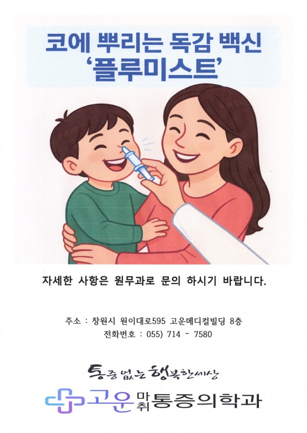 코에 뿌리는 독감 백신 '플루미스트' 가능 안내